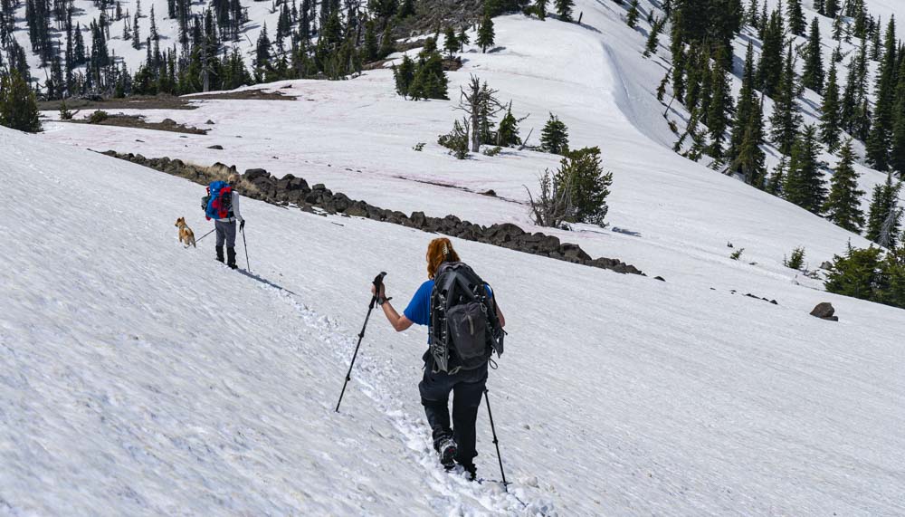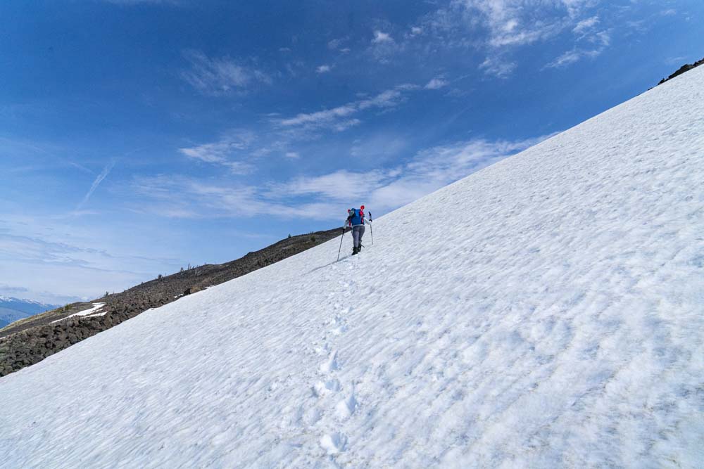 As we approached the ridge, as expected, we found continuous snow.