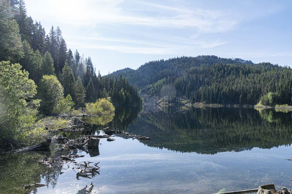 This is a lovely hike that starts out along the shores of Boulder Reservoir. This hike is best done in the Spring, Fall, and during a weekday as the hordes love this area to death. Tom, Susan, and Finn were headed back to Boise this afternoon so we got an early start…. which was good because by the time we finished the crowds were arriving.