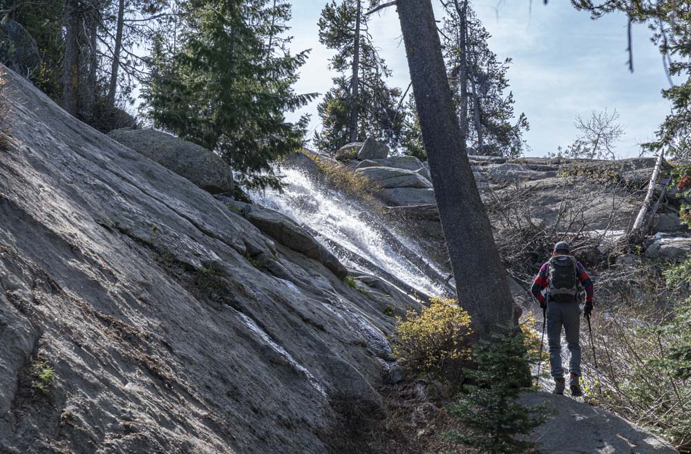 The Boulder Creek Cascade. From here, we take a left turn, do the rock scramble, and head up to the lake.