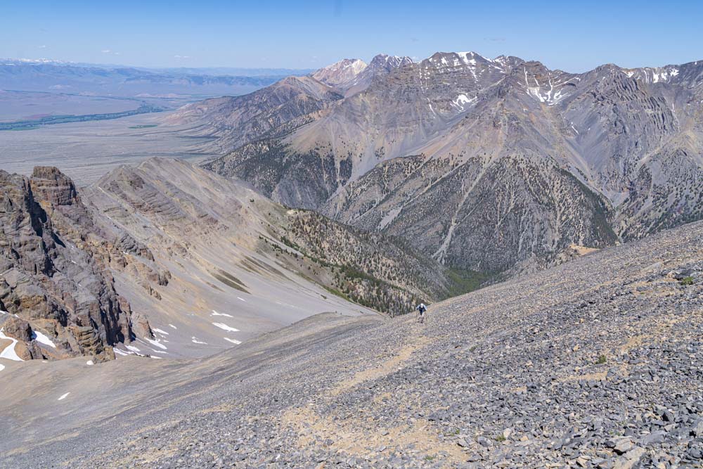 Just off the shoulder of Little Mac is Borah Peak which is the highest peak in Idaho at 12,662 feet. Borah is about 1000 feet higher than Mount McCaleb.