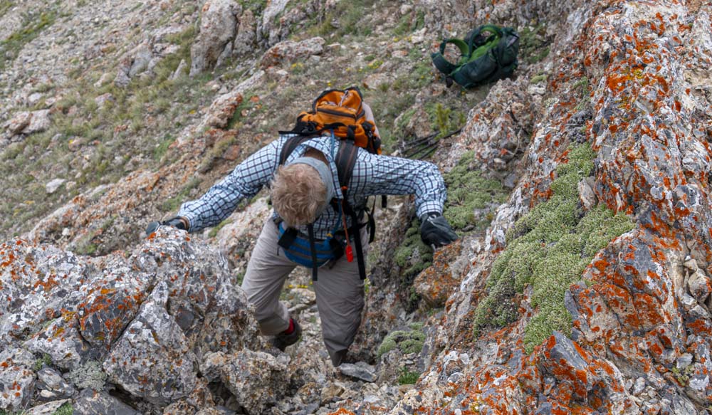 Mostly this climb was just a steep walk up but the summit had about a 10 of 15 foot head wall. Normally in these situations you make your rock moves and look over and down a 1000 foot drop.