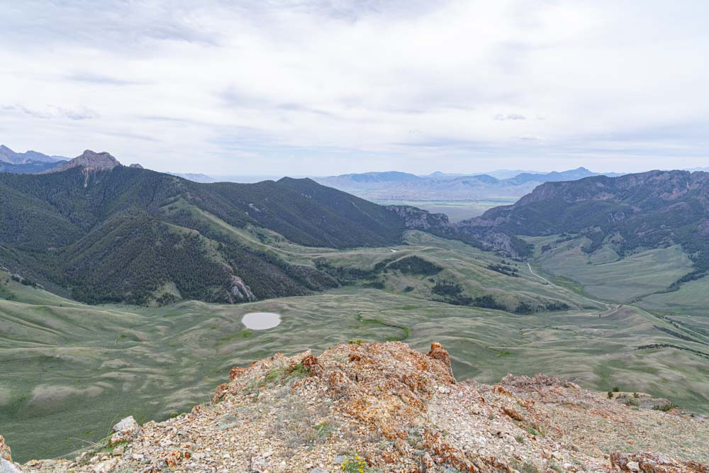 Looking south off the summit I believe the peak on the right is King Mountain. The Big Lost River Drainage is on the far right with the foothills of Arco at the end of the range.