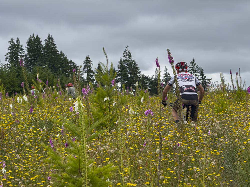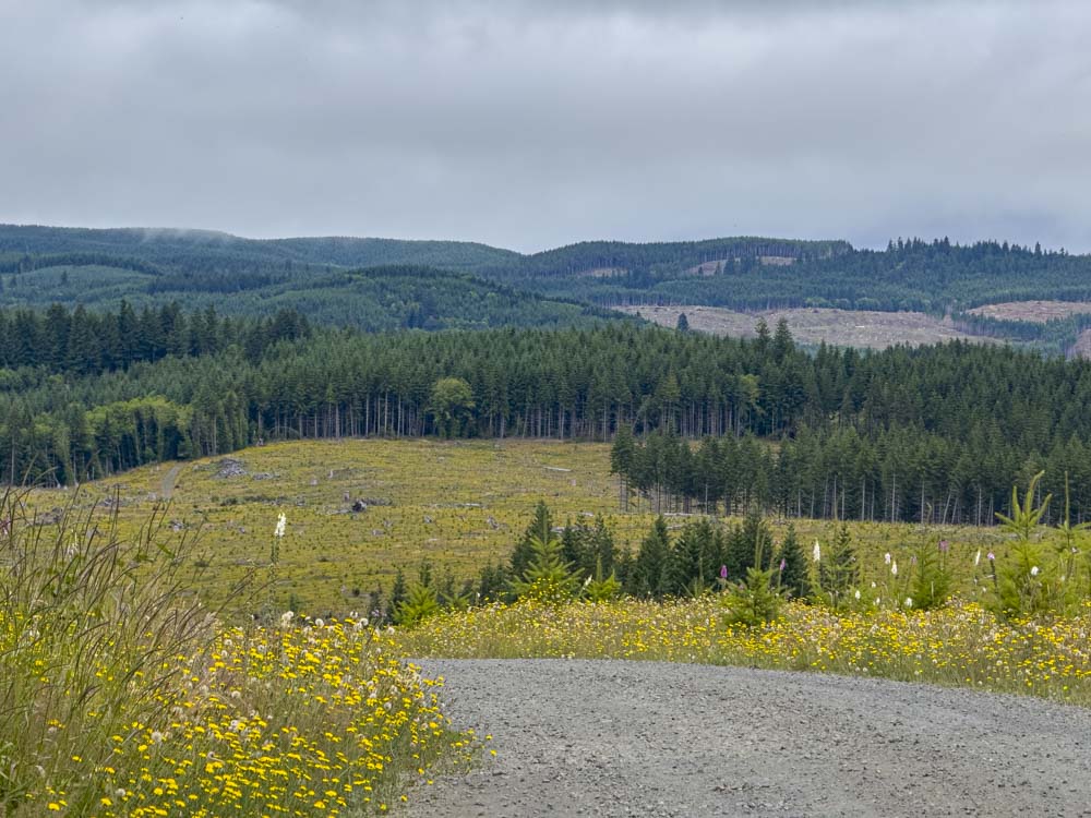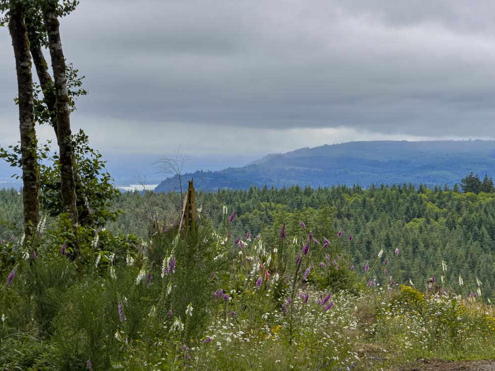 At one point we entered a small clear cut and one could see the Columbia River. Also note the weather, although it was just misty here we found out later that Mount Baker was getting soaked.
