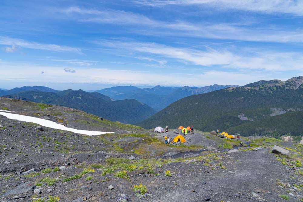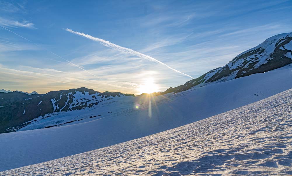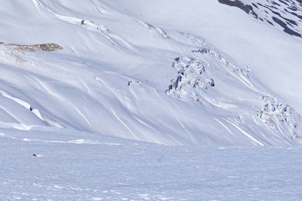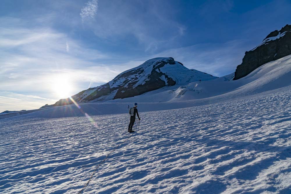 After a very hot decent on the glacier, we arrive back at camp. By now the snow had turned to mash potatoes and we were glad to be back on solid ground.