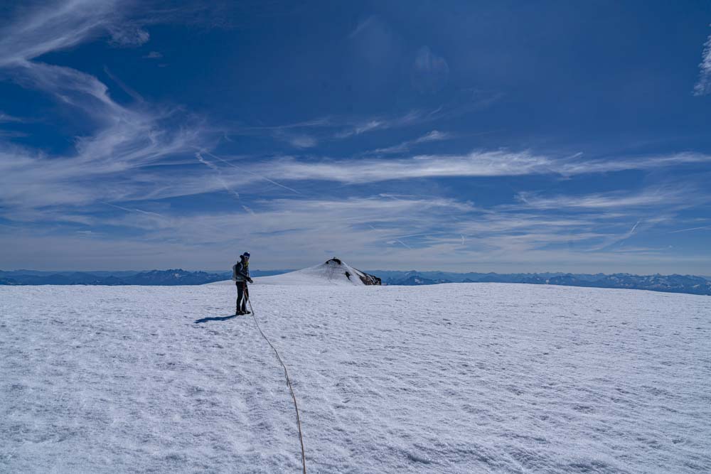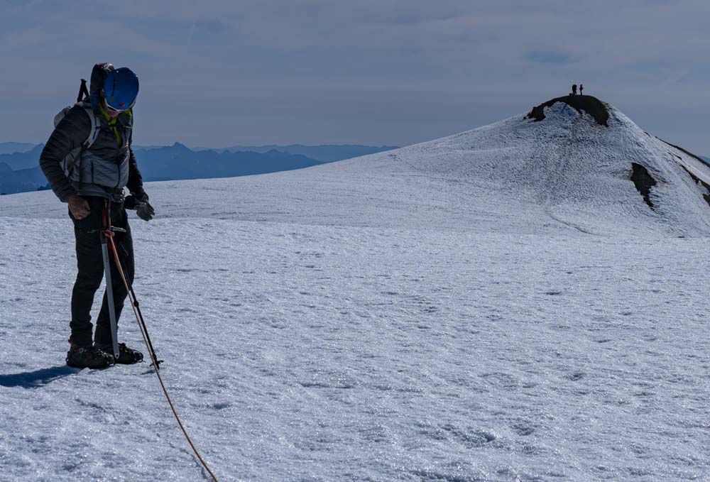 Tom takes a moment as we work over to the summit. The other group on the summit gives one some scale.