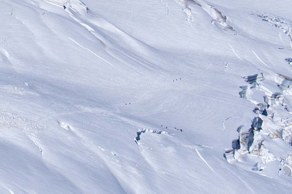 Again, this is a series of enlarged images showing the scale of the mountain. Can you see the three climbing groups in the first image?