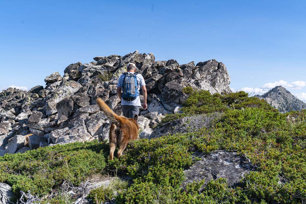 Craig and Dakota make the final pitch up to the summit. Notice Beaver Dam Peak just to the right.