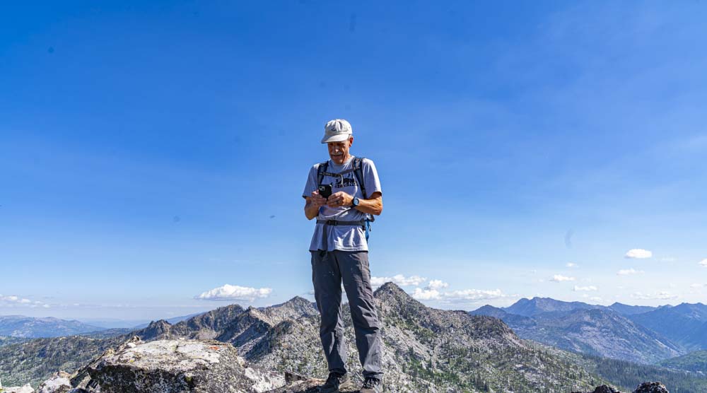 Craig checks his Tic Tok feed while waiting for Dan and I to join him on the peak. Craig is in the process of moving to a land far away and he will be missed around these parts!
