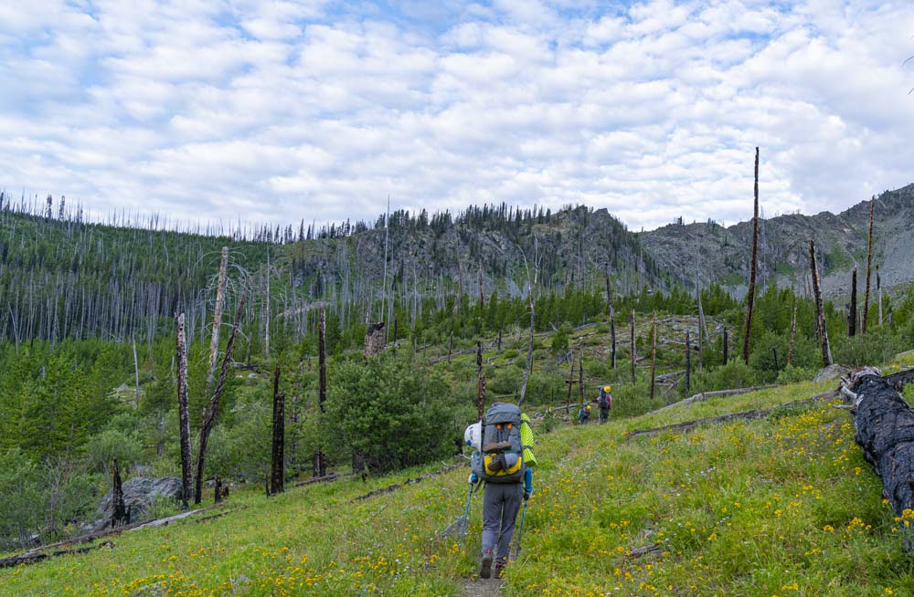Our forecast on Day 3 called for thunderstorms so we needed to plan accordingly. After some discussions, we decided to bump our camp up the trail about 2 miles and set up as early as possible. This gave us the option to fall back if needed for cover.