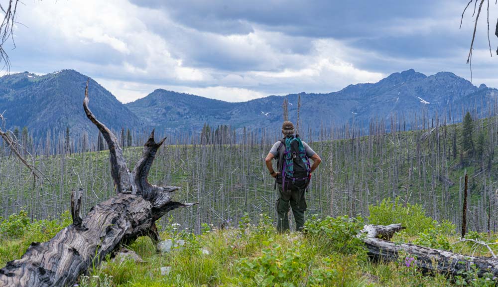 We found a mighty fine spring then headed back down. As we made our way back to the trail, Carl stops to take in the view. It was about here that the first big clap of thunder hit. Despite being a mile or more apart, the entire crew knew is was time to head back for cover.