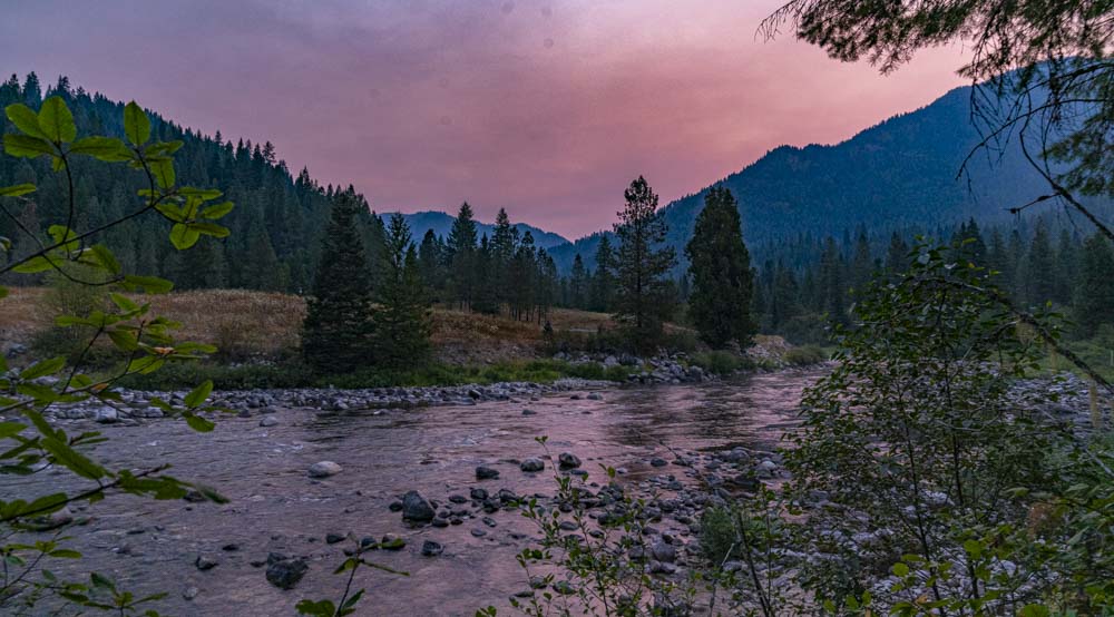 We camped here overnight as we waited for our shuttle ride home. Early the next morning the smoke and light over the Lochsa River made for an eerie feel.