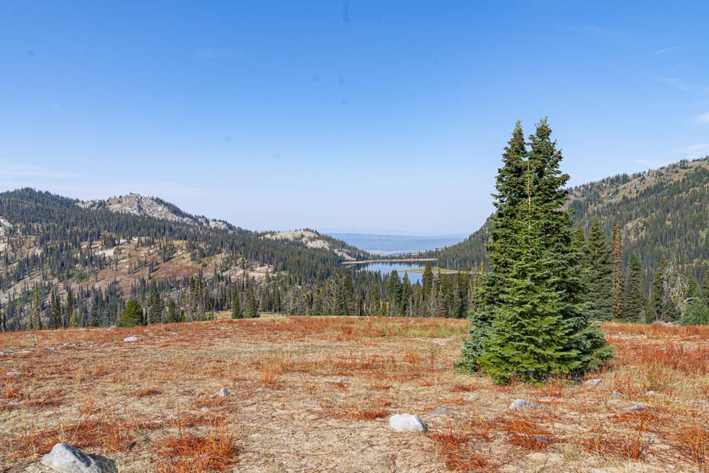 The first stop on this adventure, Malony Lake. To get there we descend this spicy little hill into the Malony Lake Basin. An overnight here then we will be going over the ridge in the distance and then beyond. John, Craig, Ruby, Dakota, and I visited this lake back in June of 2021…. it looked a little different then, check it out here.