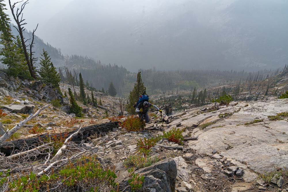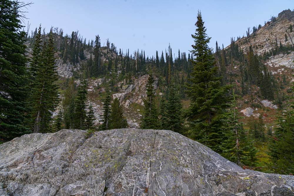 Near the top of the ridge, we say goodbye to Buckhorn Mountain Lake.