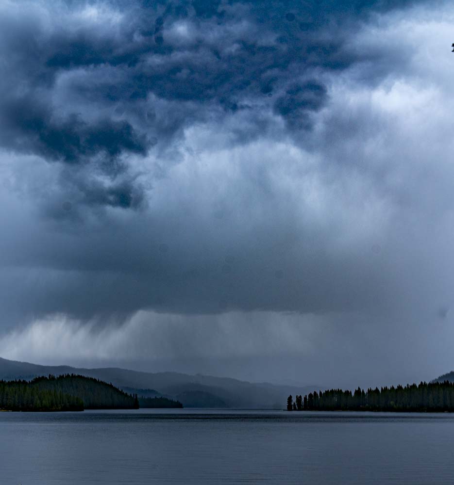The light and layers of a thunderstorm over Lake Payette are pretty cool!