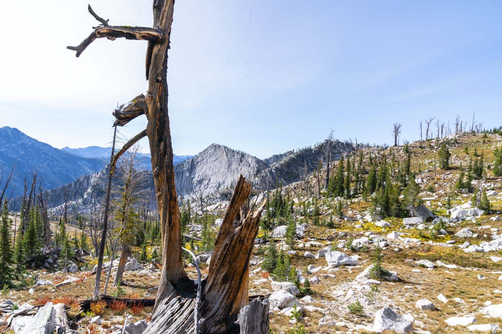 As we made our way east to the saddle over the Victor Creek Basin, these old snags were everywhere.