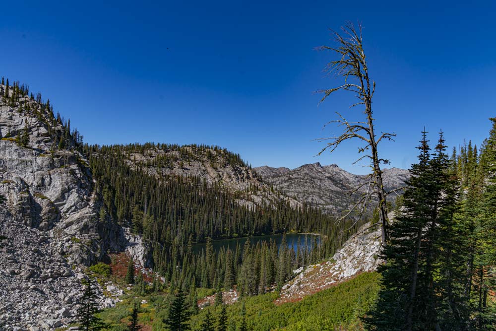 One final view of the Upper Snowslide Creek Basin with shadows, fall colors, lake views, and Lick Creek Mountains in the background. What a beautiful day!