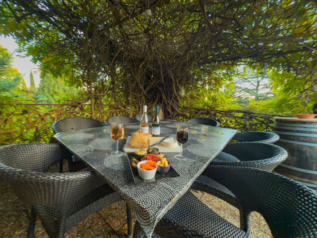The next leg of the trip is a flight down to Montpellier. As we approach landing, I shot this view out of the window of the Mediterranean Sea. The camera focused on the window instead of the landscape but you get the idea.