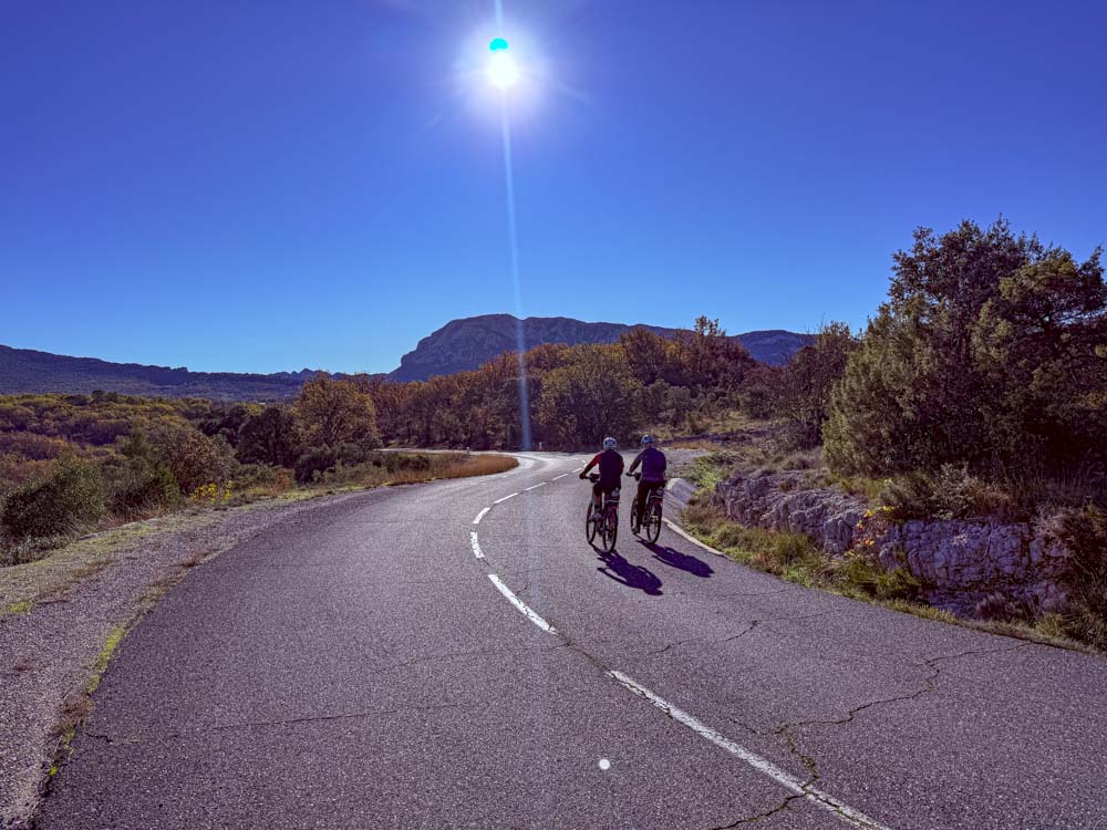 From this angle on Pic St. Loup you can almost imagine that it was a giant mountain and the middle is missing. Oh and notice the glorious day we were enjoying?