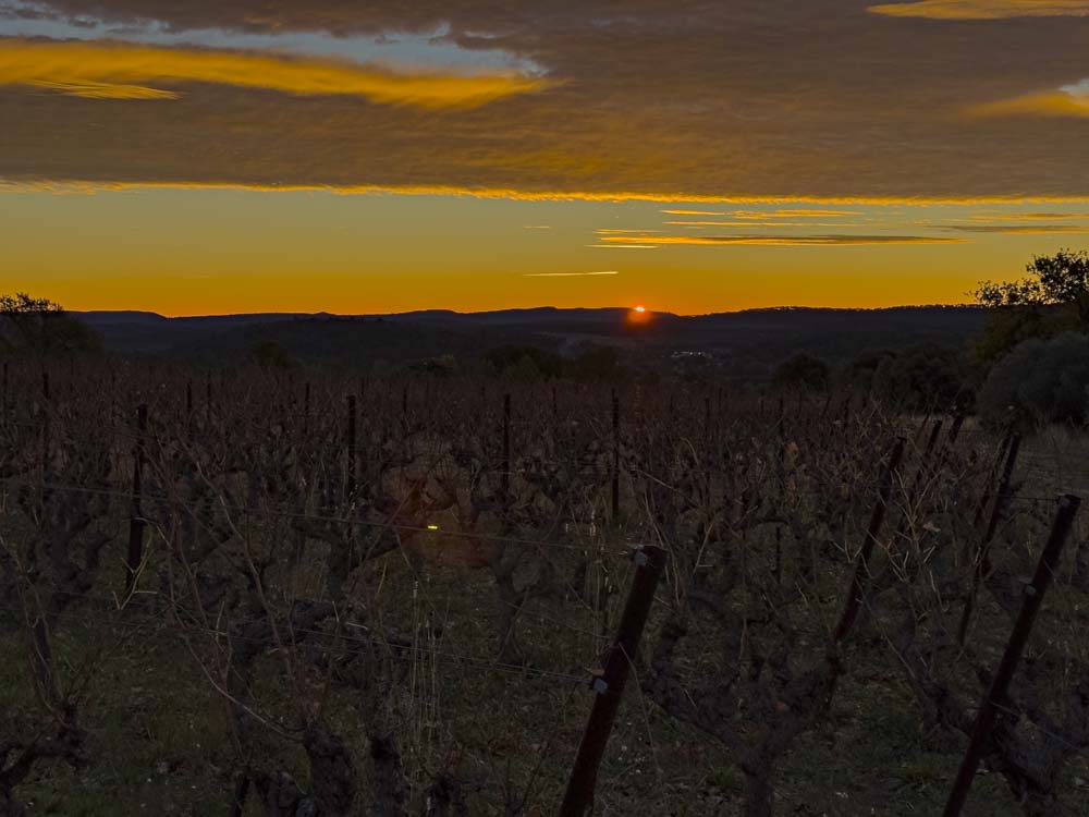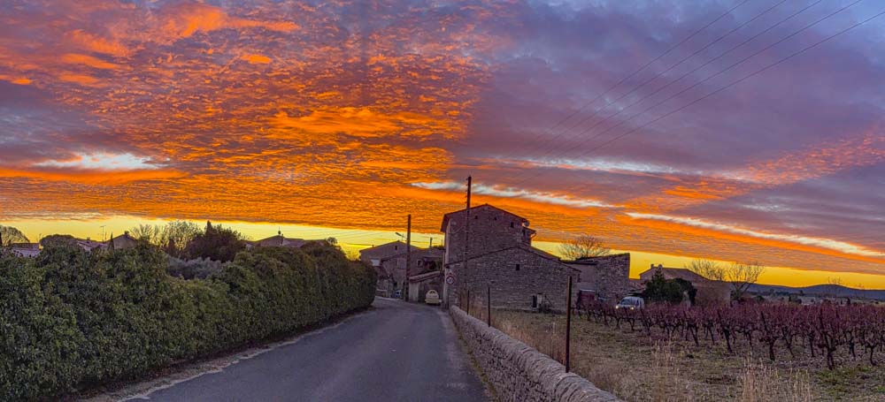 In the distance, Pic St. Loup, we will be riding away from it today and head straight north.