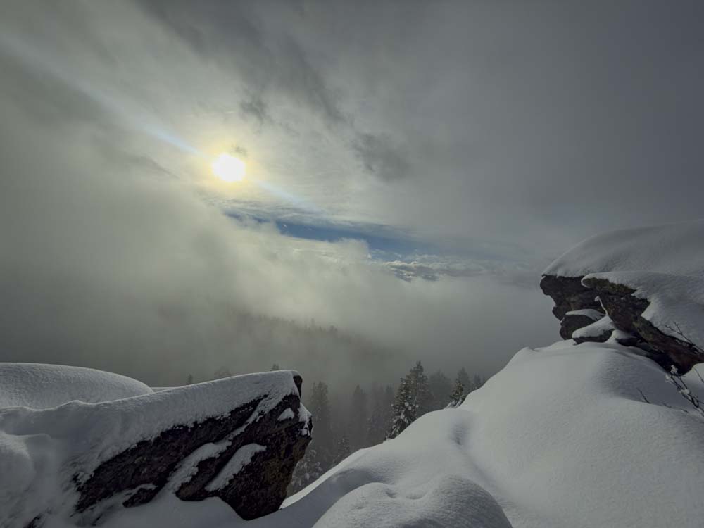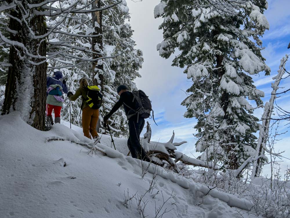 Anne and Coco head up a track which has already been set….. I think someone was out for a winter solstice hike. (Again, this adventure happened a couple weeks ago and is on the catch up list.)
