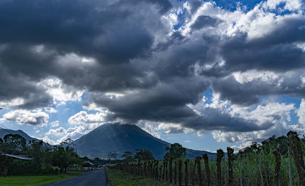 The town of La Fortuna with the cloud toped volcano. Stand by, more to come!