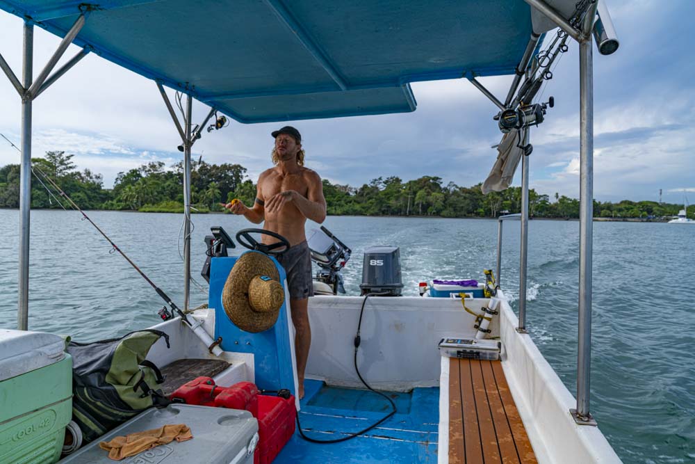 We stop at a remote lodge for lunch where we had them cook up the fish we caught along the way. The Playa Cativo Lodge.