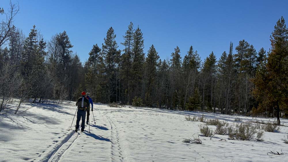 Bill and Tom set some tracks as I try to document the situation. Notice the Blue Bird Day. Not much good for snow accumulation but it is nice for recreational purposes!