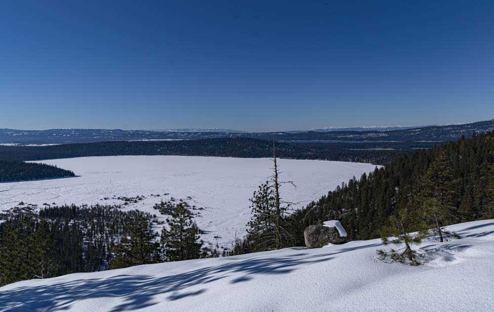 As Tom sipped on his hot tea, I shot a few summit shots. We did head over and explore a new route to Payette Point but after a few minutes of a brush-beat down we opted to turn back. Another amazing bluebird day in Valley County!