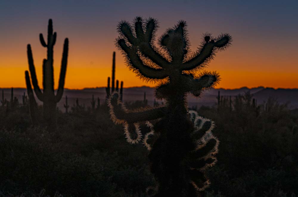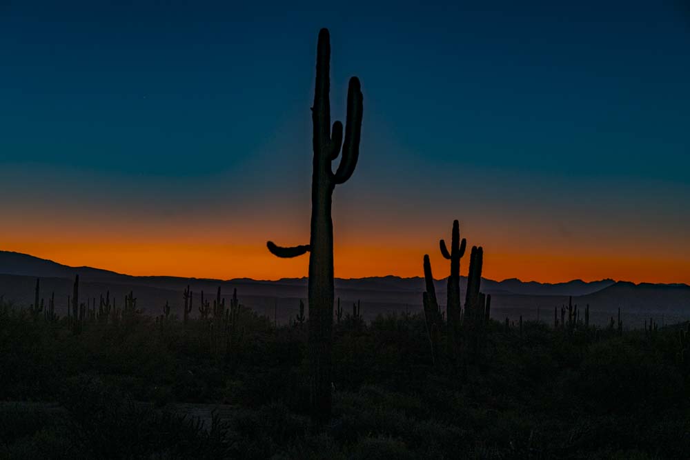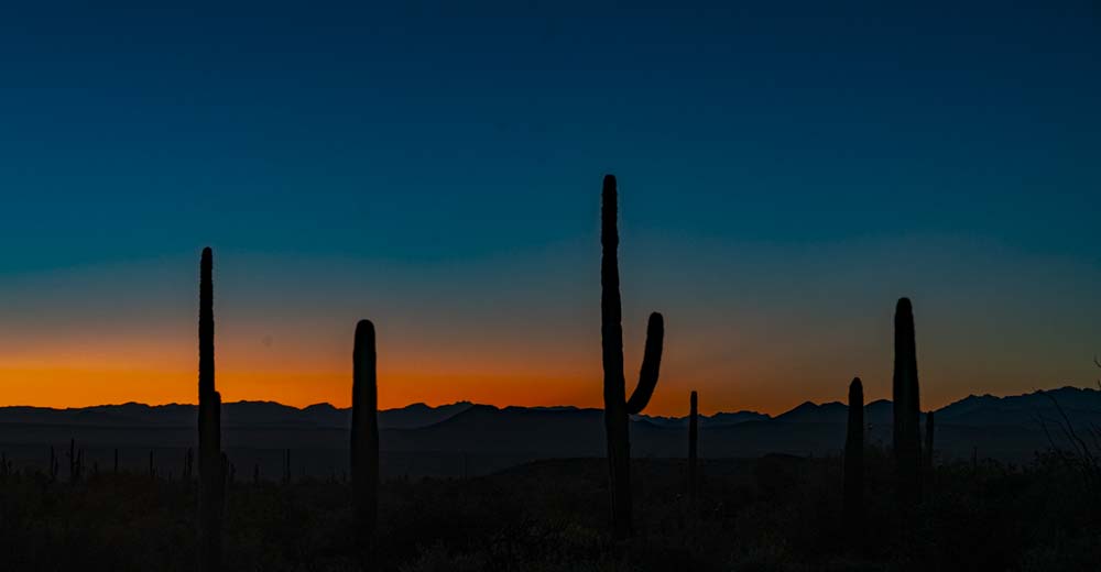 Cactus against an orange sky.