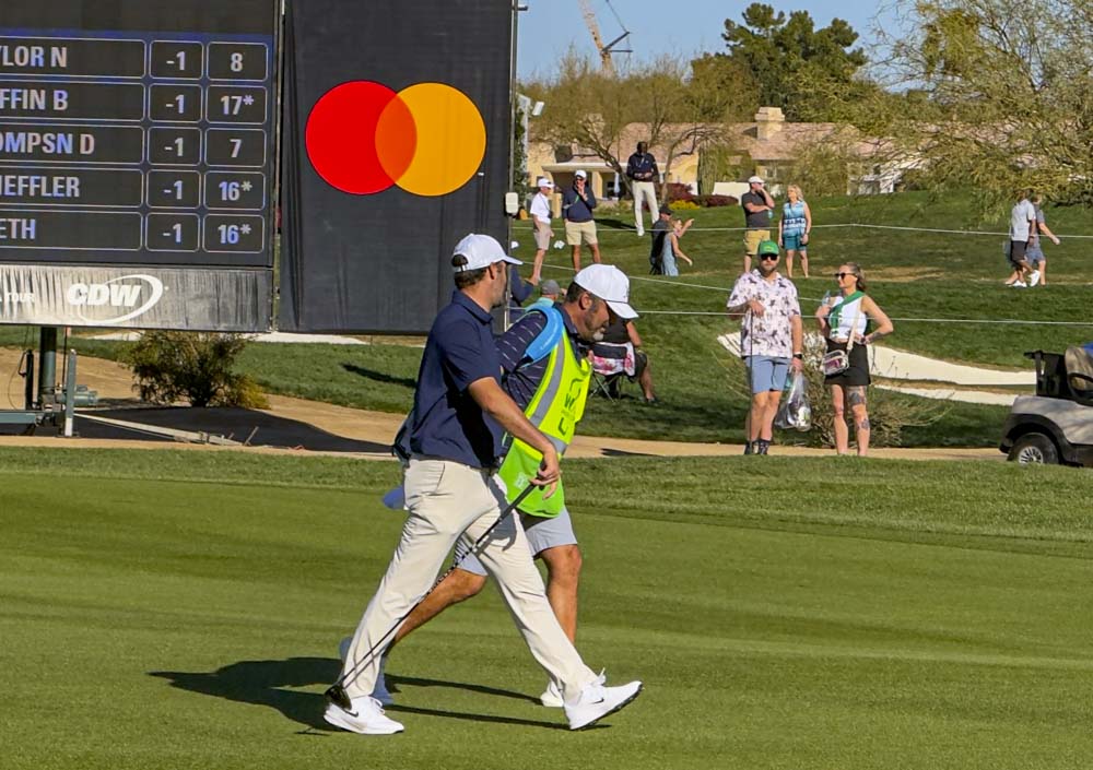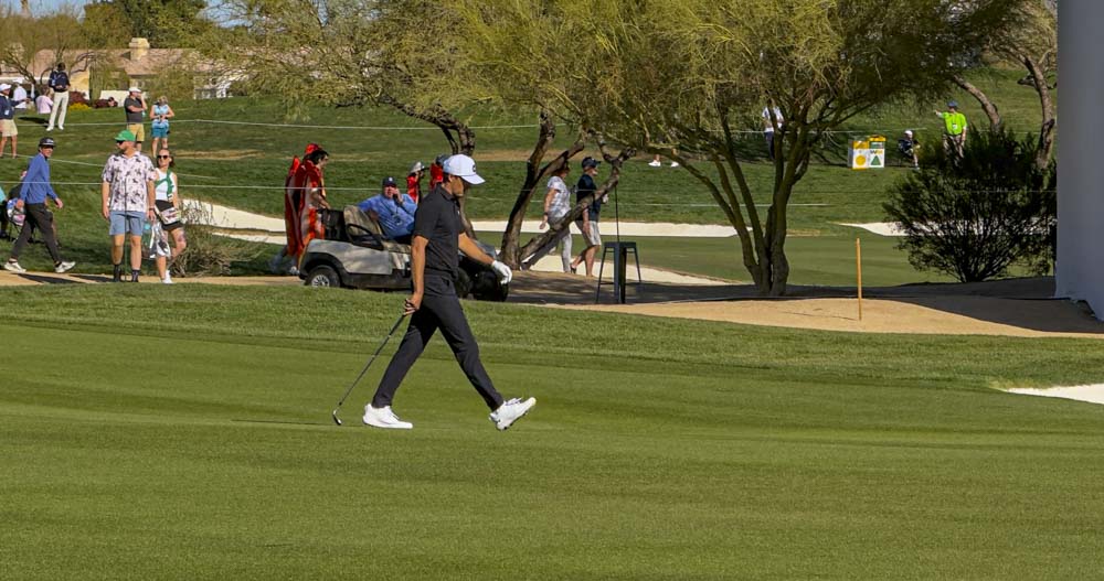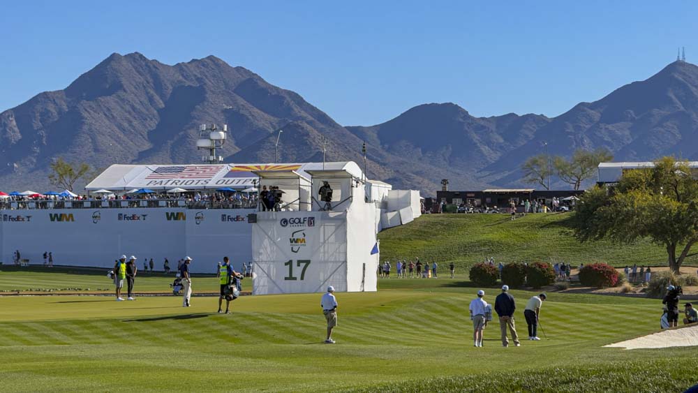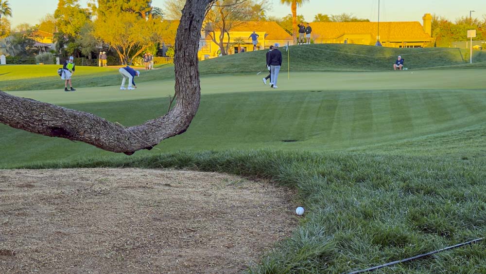 Later in the day, we post up on the 18th green and watched groups finish the day. Thursday at the Phoenix Open was an amazing experience!