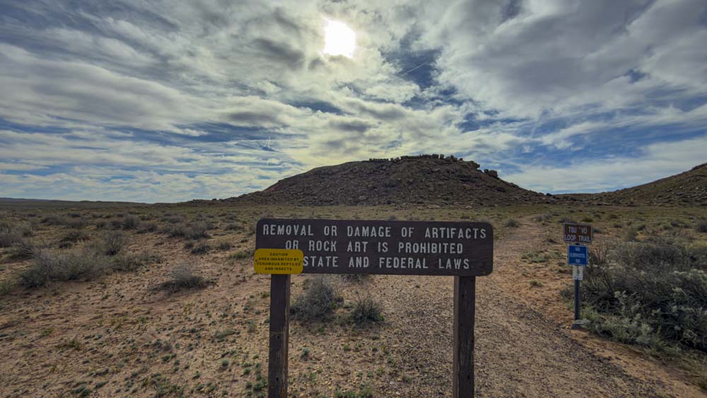 After visiting the ruins, the boys dropped me off and headed back to the valley. I went for a hike seeking the Park high point. The small yellow sign on the left says look out for poisonous snakes and insects.