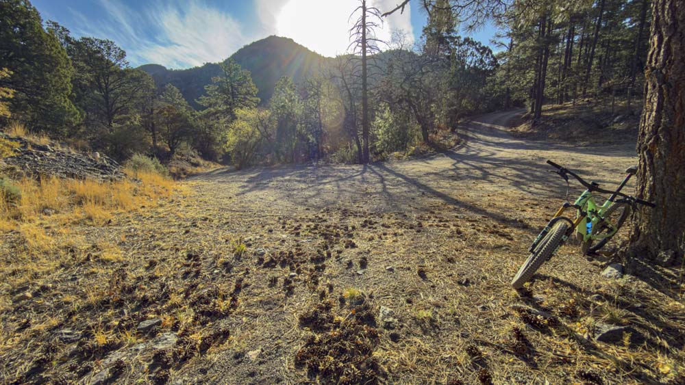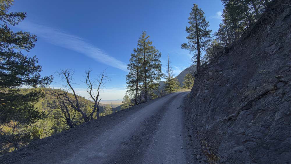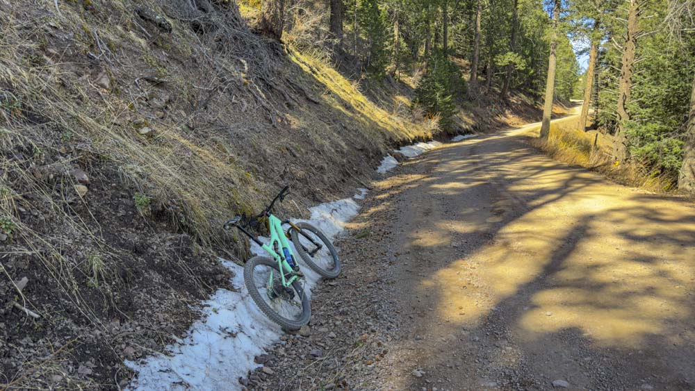 My goal today is to ride up South Baldy Peak which from the campground is about a 4000 foot climb. Luckily today things are quite a bit cooler. In fact, one might say cold!