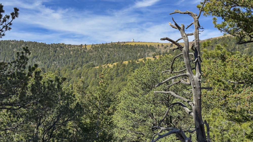 As I near the top, check out the observatory! More space themes! This is the Magdalena Ridge Observatory.